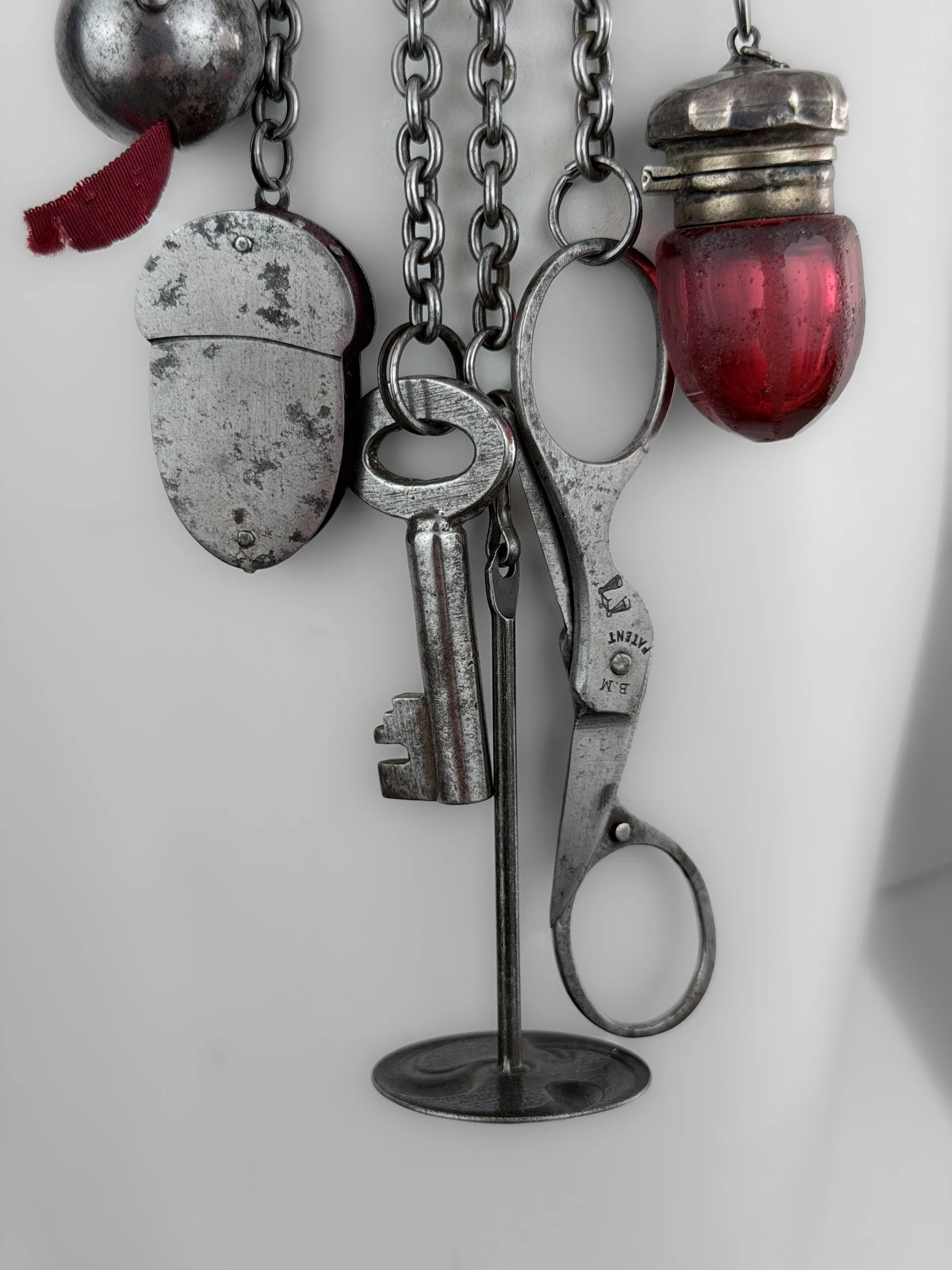 Shop Categories: All Silver Jewellery Mourning Jewellery Pendants & Charms Chokers Chatelaines Fobs Gift Card Jewellery Lockets All | Silver Jewellery | Mourning Jewellery | Pendants & Charms | Chokers | Chatelaines | Fobs | Gift Card | Jewellery | Lockets | Victorian Onyx, 9ct gold and Seed Pearl Locket £850.00 Victorian 18ct Gold Onyx In Memoriam Locket with Seed Pearls £995.00 Sterling Silver Victorian Buckle Choker £195.00 Art Deco Green Paste Drop Necklace £150.00 Victorian Rock Crystal Heart on Chased Split Ring £265.00 Victorian Mourning Buckle Ring, circa mid-late 19th century £450.00 Victorian Silver Albert Chain with Lantern Pendant £375.00 Georgian Buckle Choker £150.00 Victorian Solid 9ct Gold, Turquoise and Bloodstone Fob £320.00 Victorian Sterling Silver Albert Chain Necklace £395.00 Antique Buckle Choker £85.00 Georgian Buckle Choker £195.00 Georgian Cut Steel Buckle Choker £95.00 Georgian Cut Steel Custom Choker £95.00 Mid-19th Century Steel Chatelaine with Household Implements £550.00 Victorian Celestial Silver Book Chain with Removable Locket £325.00 Edwardian 1916 Solid 9ct Gold & Onyx Fob £250.00 Gift Card from £10.00 Victorian sterling silver “Love Token” - initials ‘NHT’. £60.00 9ct Gold & Smoky Quartz Swivel Fob Pendant £120.00 Victorian Mourning Brooch With Hairwork £170.00 Victorian 1901 Engraved Padlock Heart Pendant £220.00 Victorian Spinner Fob/ Locket £220.00 19th Century Gold Cased Carnelian Fob Seal £195.00 Victorian Gold-Cased Carnelian Fob Choker £220.00 9ct Gold and Pale Blue Paste Spinner Fob £195.00 Edwardian 9ct Gold and Citrine Spinner Fob £200.00 Victorian Vulcanite Locket - Birds £150.00 19th Century Gilt Metal Wax Seal Fob Choker £195.00 Sold out 1911 George V Coronation Meda £75.00 1913 9ct Gold and Citrine Spinning Fob (Chester) £280.00 Victorian Jet In Memoriam Locket £250.00 Victorian Sterling Silver Book Chain Collar with Fern-Engraved Locket £595.00 Victorian Sterling Silver Aesthetic Movement Brooch & Earrings £150.00 Antique Sterling Silver Chatelaine 1901 £895.00 Rare steel chatelaine with tools, early 19th century, circa 1820. £950.00 Antique Silver Pietra Dura Floral Pendant £125.00 Edwardian Silver & Guilloché Enamel Floral Locket Pendant circa 1900–1915 £225.00