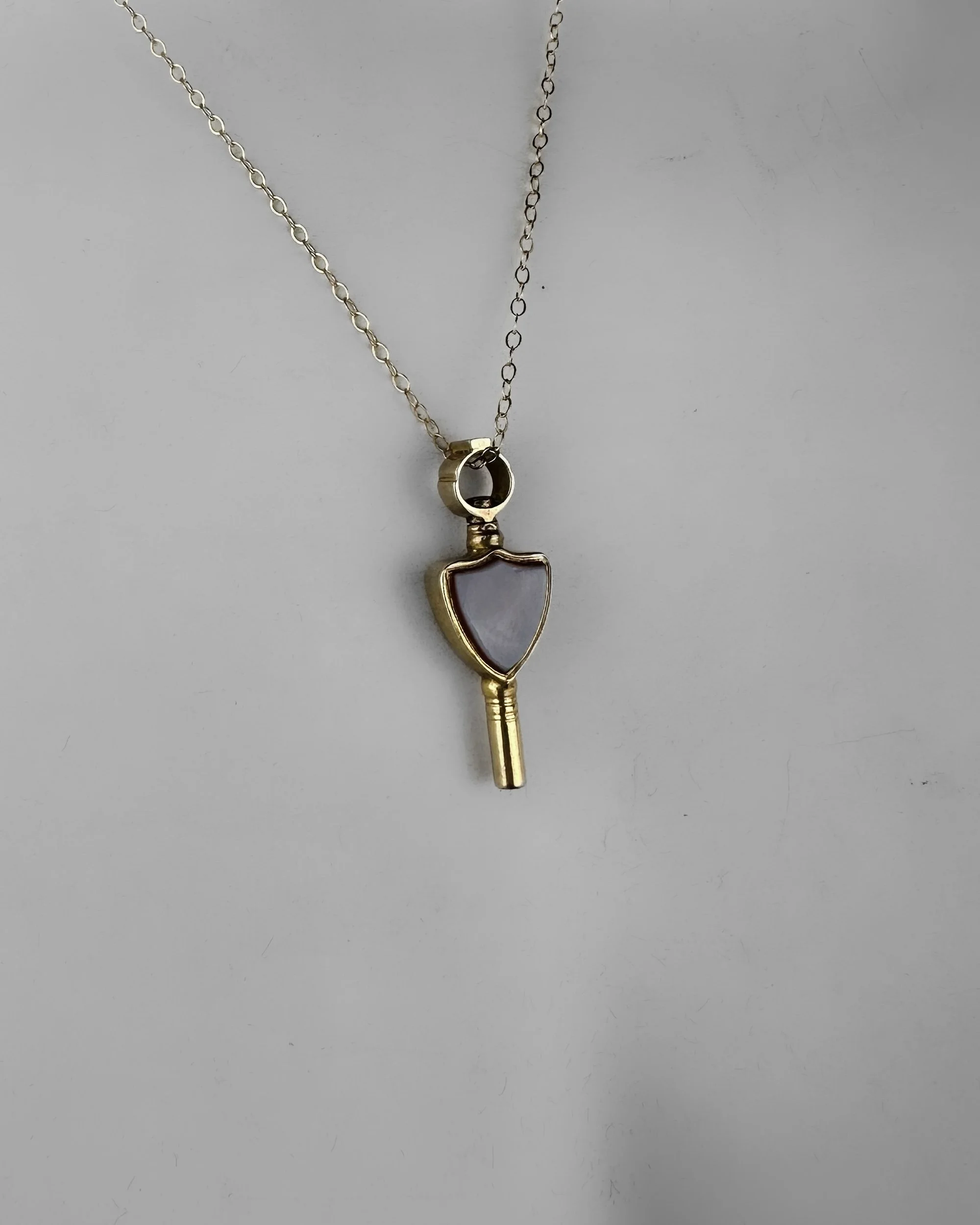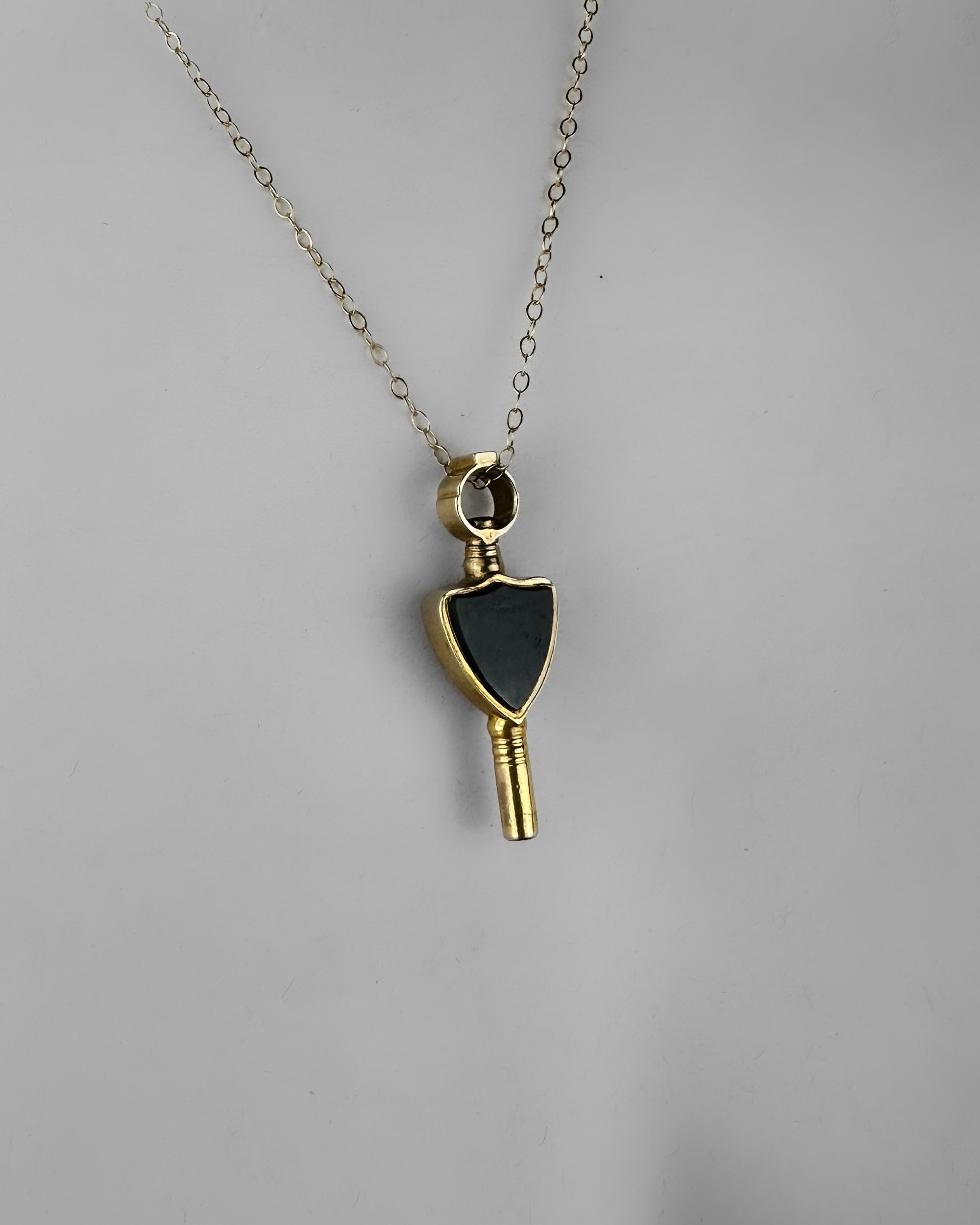 The key represents an essential object from the period before keyless winding mechanisms, when watches required daily manual winding. Such keys were frequently worn on watch chains and combined practical function with decorative and symbolic intent. The restrained gold mount reflects the utilitarian elegance characteristic of late Victorian watch jewellery.