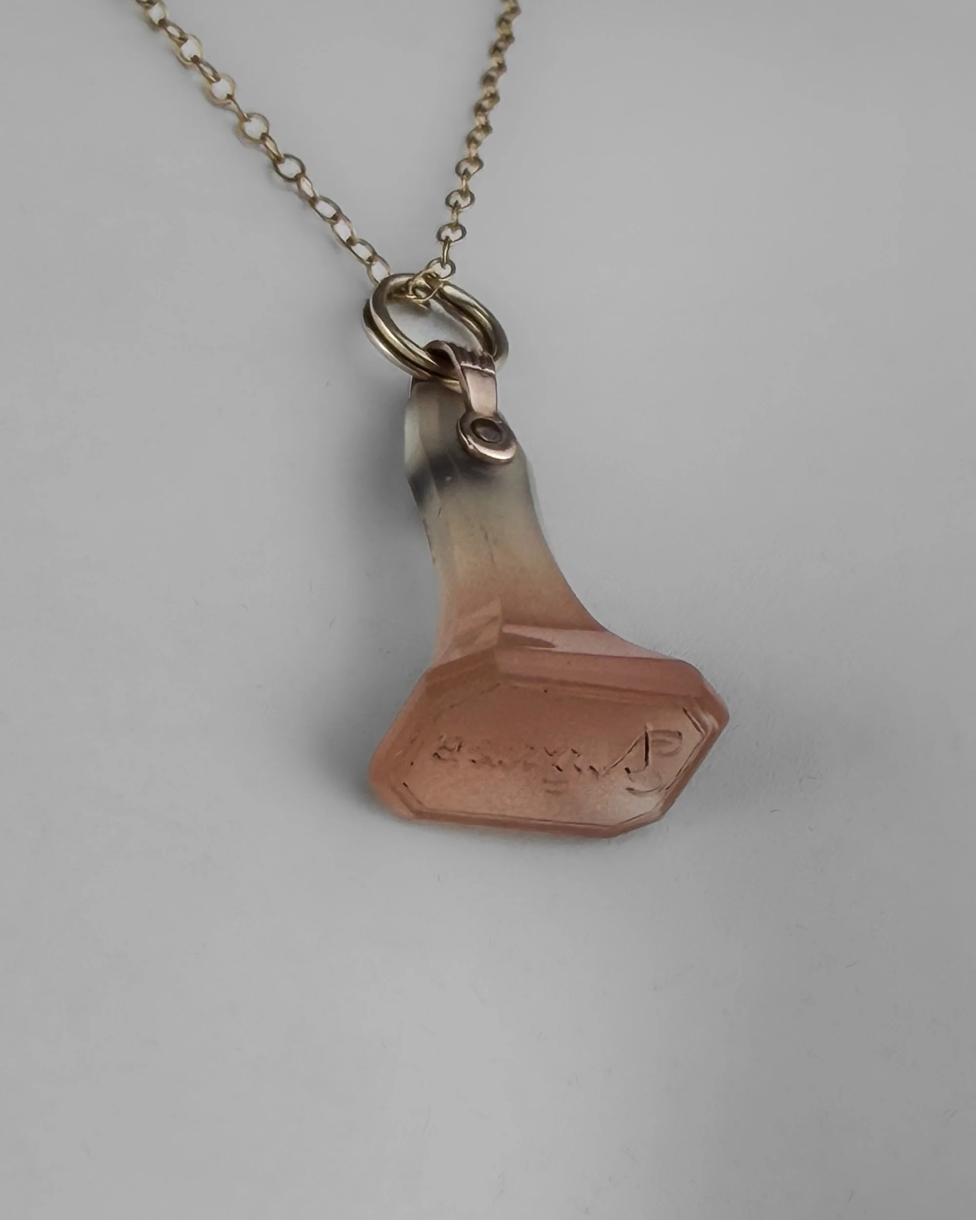 A nineteenth-century rose quartz seal, set in a 9ct gold mount and suspended as a pendant.