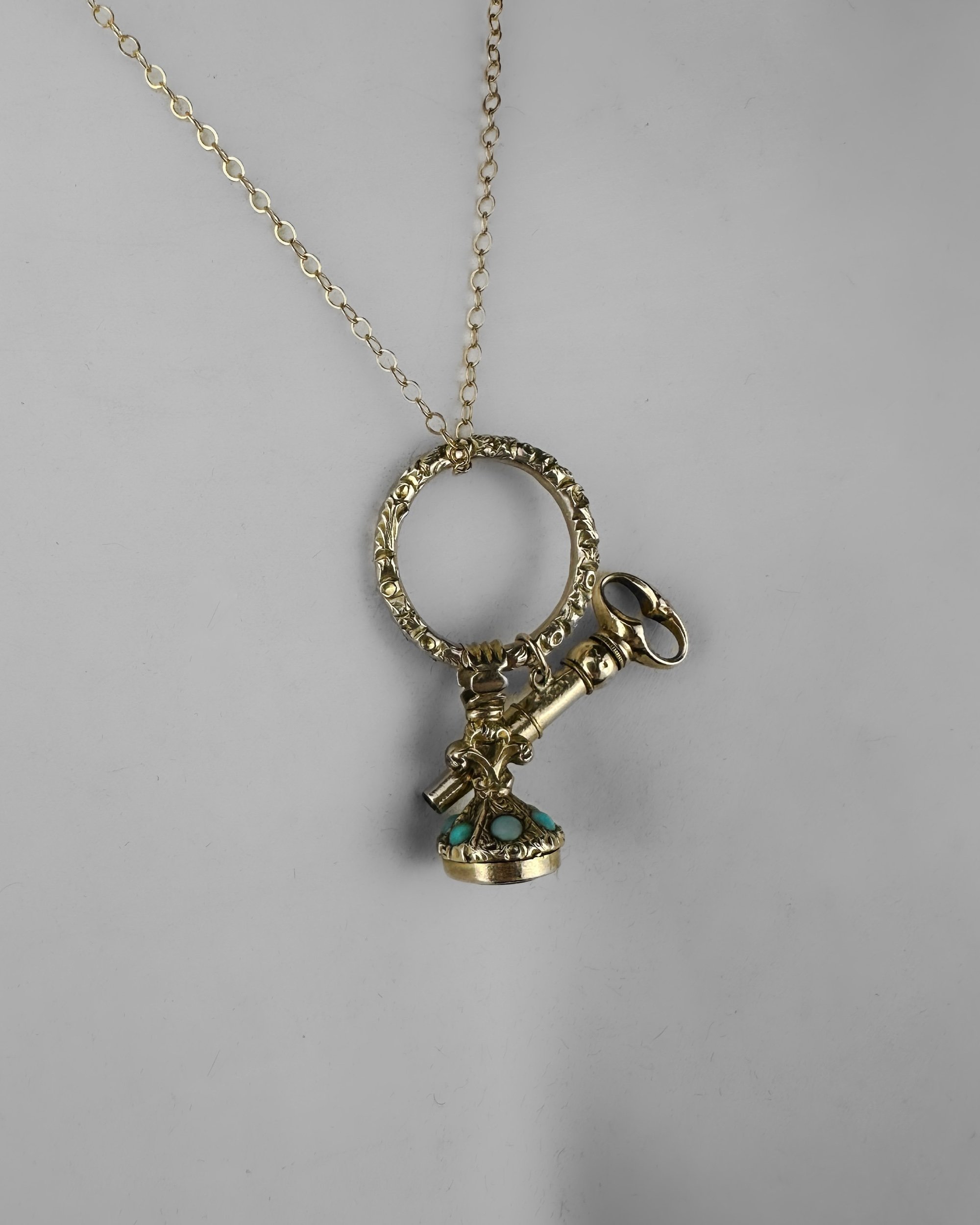 Victorian 9ct Gold Turquoise & Bloodstone Fob Pendant with Watch Key